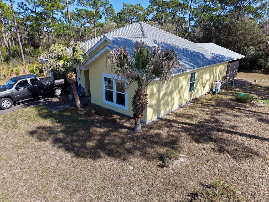 Welcome to peaceful living in the Whispering Pines community of Eastpoint. Tucked away on a quiet cul de sac, 652 Longwood Court offers comfort, charm, and space on a one acre homesite. Built in 2005, this well designed three-bedroom, two bath home features 1,492 square feet of heated and cooled living space with 2,268 square feet under roof including an attached two car garage. The layout offers thoughtful separation with the private primary suite located at the rear of the home complete with a walk in closet, while two additional bedrooms and a full bath are positioned at the front. The central living area creates a welcoming gathering space with an open living room, kitchen, and dining area along with a convenient pantry closet. French doors lead to a screened patio that extends the living space outdoors. Just beyond the patio is a small garden area that sits between the screened porch and a handy outdoor storage space, offering a pleasant spot for flowers, herbs, or quiet relaxation. Recent updates provide peace of mind including all new windows installed this year, a two year old HVAC system, and a new pump for the aerobic septic system installed this year. The home is served by public water. Set in a quiet neighborhood setting, this property offers the ideal balance of privacy, comfort, and convenience while remaining just minutes from the beautiful waters and coastal lifestyle of Franklin County. Buyer to verify all information through inspections, survey, elevation certificate, appraisal, or preferred due diligence. Taxes and insurance are specific to the current owner and may change at closing. Proof of funds or preapproval with offer.