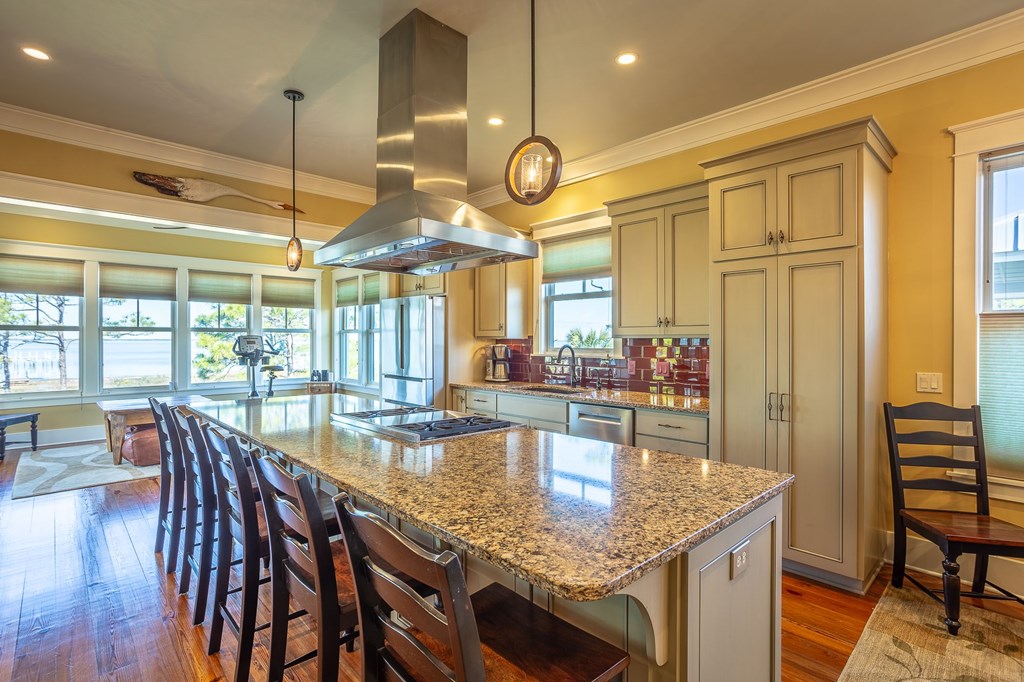 PRICE IMPROVEMENT!! Embracing the essence of coastal living, this bayfront oasis offers a harmonious blend of contemporary elegance and nature's beauty. Nestled in the exclusive gated Mariner's Harbor community, this exquisite 4BR/3.5BA residence, was meticulously crafted in 2015, reflects a seamless fusion of modern design and premium craftsmanship. Step into the heart of this sanctuary – the top-floor great room, boasting breathtaking bay views, that mesmerize the soul. An expansive bay facing porch is perfect for relaxing or entertaining family and friends. The gourmet kitchen, a haven for culinary enthusiasts, is adorned with top-of-the-line amenities, inviting cherished moments around the generous island and dining area. Unwind in the primary suite with a large walk-in closet , graced with a private deck with gulf views and a luxurious en suite bath. On the first living level, there is a second master bedroom with en suite bath along with two additional bedrooms and a full bath. There is also a large laundry room, a separate media room and separate office. Outside, a screened pool, spacious sun deck and seating area await, complemented by an outdoor kitchen , promising endless moments of leisure. Venture to the community dock, equipped with your dedicated slip and 12,000lb boat lift. Drop your boat in and enjoy a day on the water. Unique to bayfront property, there is a white sand beach to enjoy. Indulge in the allure of this remarkable retreat, where sophistication meets the serenity of coastal living. Coastal solitude at it's finest and a must see on St George Island!