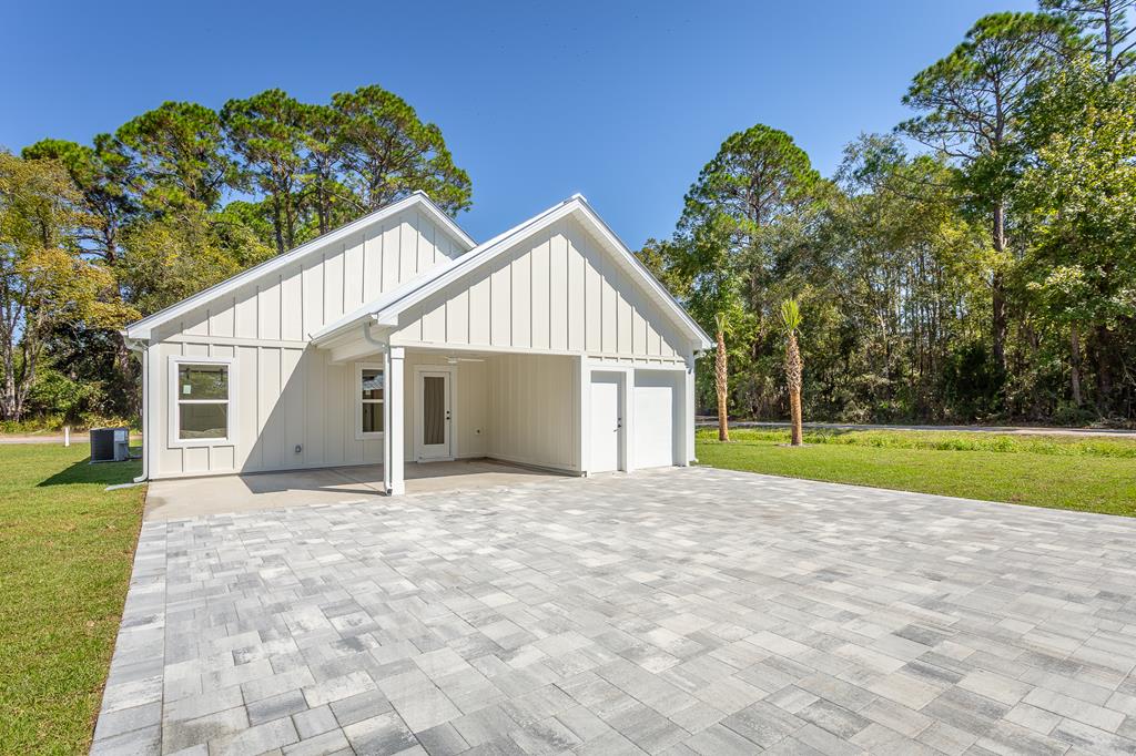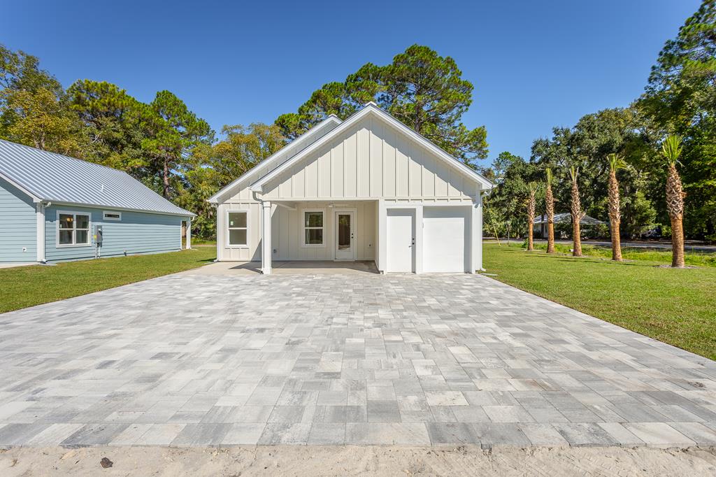 SELLER IS OFFERING $15k TOWARDS CLOSING COSTS. X FLOOD ZONE. This brand-new 3-bedroom, 2-bathroom home in charming Apalachicola delivers quality construction with a smile. Built with durable Hardie Board siding, spray foam insulation(roof & exterior walls), and a metal roof, this house means business when it comes to lasting comfort. The thoughtful design features solid wood cabinets with soft-close doors, leathered granite countertops, and upgraded flooring throughout. You'll love the modern touches like Moen black faucets, stainless steel Frigidaire appliances with air fry capability. Tile Primary suite shower. The insulated golf cart garage keeps your ride ready for quick trips to downtown's shops and restaurants. Access your covered patio – perfect for morning coffee or evening relaxation. Located just minutes from the public boat launch and 15 minutes to beautiful St. George Island pristine waters, this home puts you close to water adventures while keeping you connected to Apalachicola's vibrant community. Construction completed with a 1yr Builder Warranty.